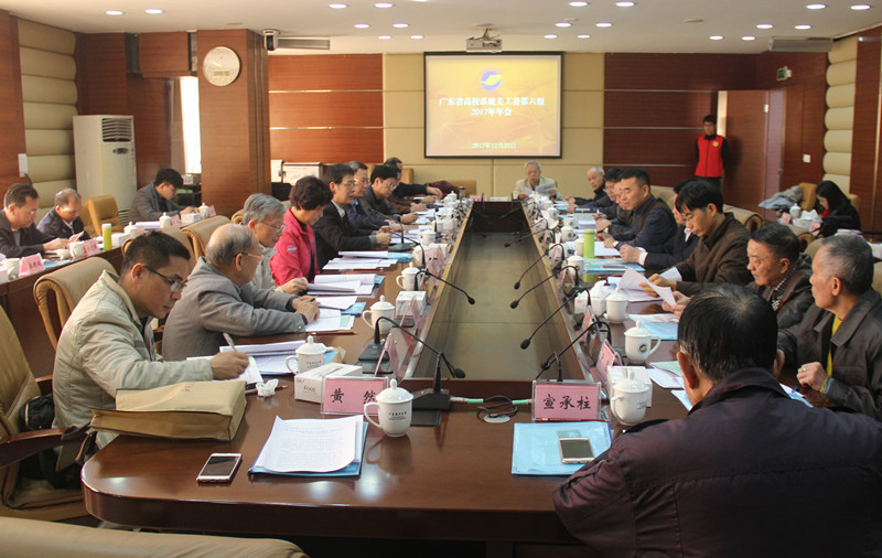 | 广东省高校系统关工委第六组2017年年会于12月22日上午在我校湖光校区行政楼五楼会议室召开。省教育系统关工委秘书长蔡春逢、湛江市关工委常务副主任高焱明、湛江市直关工委李华炳,我校党委书记关志强,党委副书记、纪委书记彭权群,关工委常务副主任陈上福、副主任何以元、莫连、秦明双、谭留文,离退休人员工作处处长、关工委秘书长曾庆新,学生处处长李育芳,团委副书记袁仁广,以及第六组成员单位十五所高校关工委代表共37人出席了会议。第六组组长单位、广东医科大学关工委主任侯小慧主持会议。 学校党委书记关志强出席会议并讲话,他对前来参加本次会议的代表表示热烈欢迎,并简要介绍了我校的办学历史、特色和目前我校高水平海洋大学建设情况。 学校党委副书记、纪委书记彭权群在会上致欢迎辞。他代表学校对前来出席年会的各级领导和兄弟学校代表表示热烈的欢迎。他说,近年来学校党委高度重视支持关工委工作,关工工作取得一定的成绩,但是离上级关工委的要求还有不少差距,希望借这次会议在我校召开的机会,认真向兄弟院校学习,积极开展立德树人教育活动,不断提高关工委工作水平。 会上,有9所院校关工委代表围绕“学习贯彻十九大精神,总结交流一年来关工委工作的经验做法,研究如何进一步加强和提高关工委工作水平”这个会议主题进行了交流。我校关工委陈上福在会上作了题为《深入学习贯彻党的十九大精神,推进关工委工作迈向新征程》的发言,介绍了我校关工委的工作情况及特色品牌。省教育系统关工委秘书长蔡春逢在会上作总结讲话。他首先代表省教育系统关工委对年会的顺利召开表示祝贺,并对我校会议筹备组织工作给以充分肯定。他还对各高校关工委一年来工作取得的成绩表示赞赏,特别对我校关工委开展十九大精神的学习宣传贯彻、加强学生思想教育工作、积极参与学生党建工作、打造特色工作品牌等做法予以高度评价。他还介绍了省教育系统关工委今年的主要工作情况,并对明年的高校关工委工作提出了要求。他强调,明年高校关工委要认真抓好六方面的工作:一是抓好党的十九大精神学习宣传贯彻工作,特别要充分发挥好“五老报告团”的作用,使十九大精神在大学生中入脑入心;二是抓好朝阳读书活动;三是开展好你我献爱心的公益活动;四是继续抓好家长学校的建设;五是抓好高校关工工作的品牌创建,特别是要在如何利用网络和新媒体加强青少年思想教育、如何教育大学生听党话跟党走、如何参与维护青年教师和学生的合法权益等方面积极创新,各院校要结合自身实际组织邀请杰出校友回校进行报告宣讲,充分发挥榜样的模范力量;六是大力加强高校关工委的自身建设,组织开好一年一度的年会,加强交流学习,使关工委工作常态化、规范化。 会后,领导和与会代表一起合影留念。